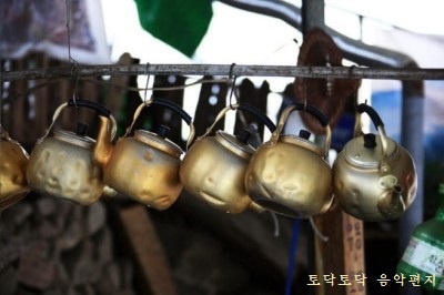 오래된 주전자가 쉬쉬쉬 소리 내며 끓는다